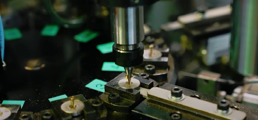 弊社では、トランスファープレス機によって材料投入から加工完了まで一括生産を行っています。トランスファープレスとは、1台のプレス機に複数工程の金型を工程順に配列し、次工程への搬送装置(トランスファー機構)を備えたプレス機のことです。トランスファープレス機の導入によって、ローコストで連続的に高品質な生産体制を実現することができます。加工難易度が高いとされているSUSの深絞り加工も実現させました。ペン先部品においては、φ1mm以下の内径の精密深絞りが可能で年間2億個の生産実績があります。プレス機に必要な金型は設計から製作まで自社で行いますので、製品の量産に至るまで一貫した管理体制が整っております。内製している金型の精度はミクロンオーダー、加工可能な製品サイズはΦ1.0~6.0且つ長さ30mm程度です。
